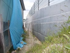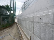6号バイパスの拡幅に伴い隣接民家に配慮し防音壁を設置することになり、既存擁壁としてあった間知ブロックを撤去せず背面に残したまま工事が出来るという事で採用になりました。