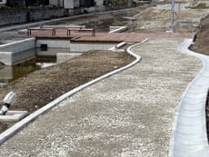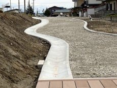 遊歩道としての趣を残す為にあえて曲線が多くなっていますが、大変綺麗に布設していただき、後は早く全体の工事が完了され、人々の憩いの場となる事が待ち望まれます。