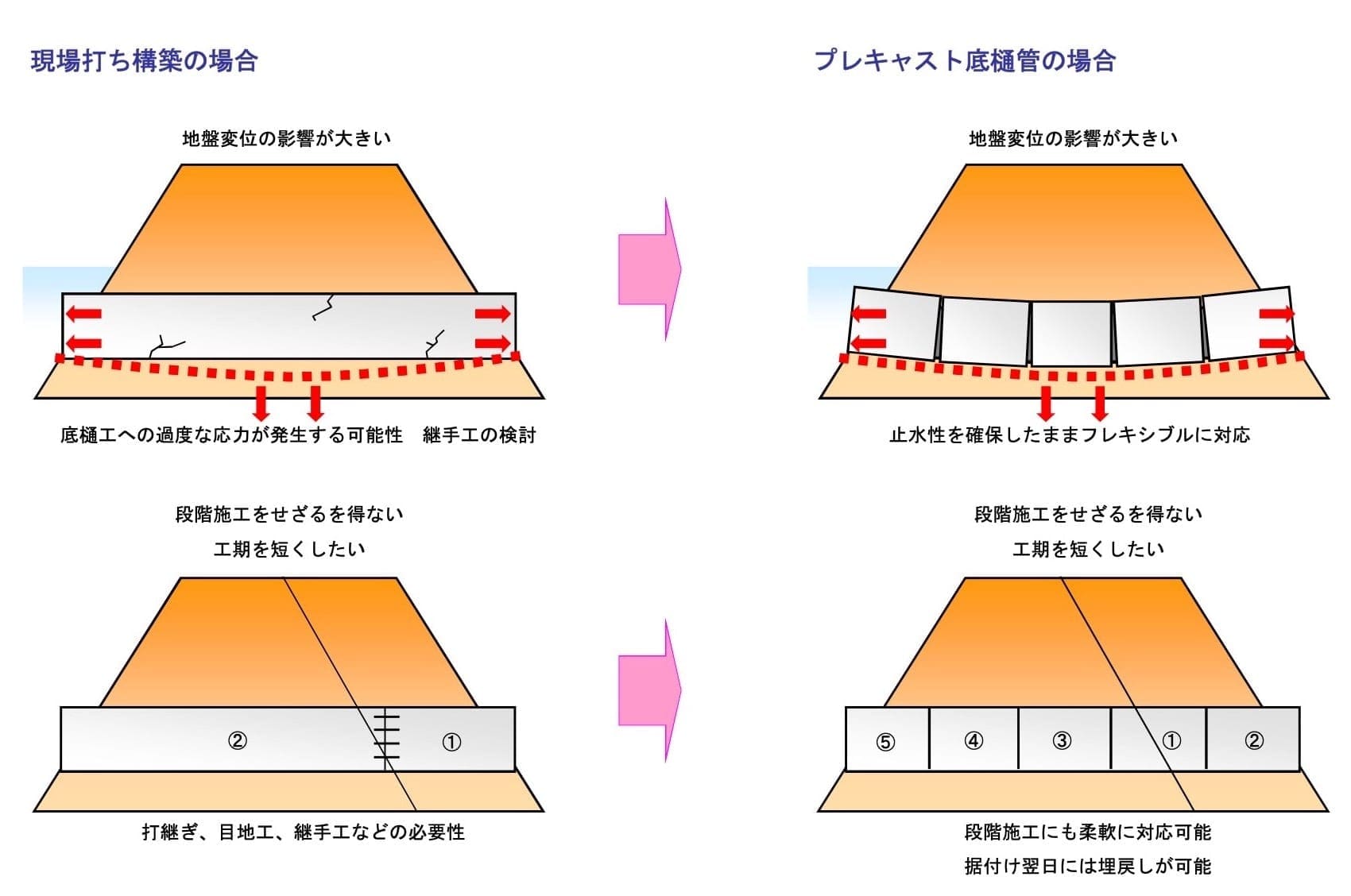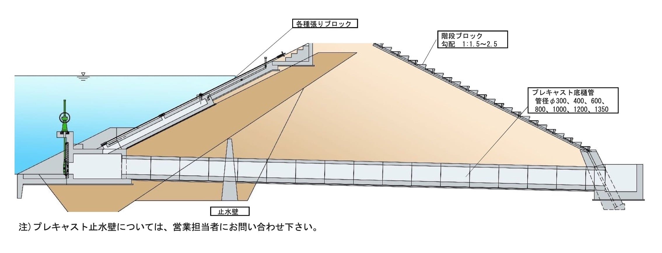 - 底樋管と止水壁の継手についても、完全止水工法を採用していますので漏水の恐れはありません。