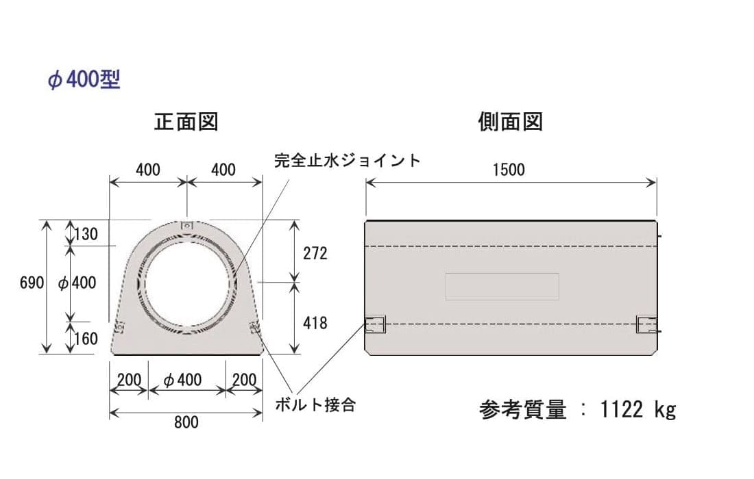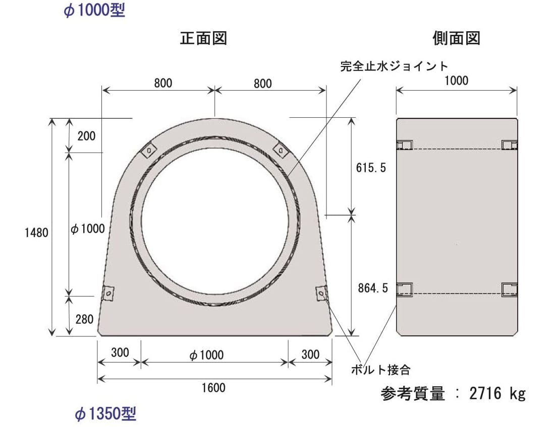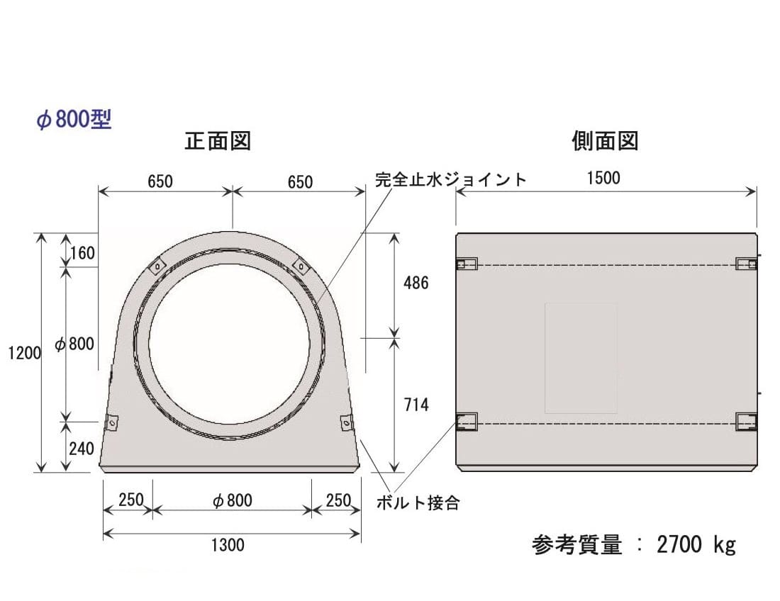 - 分割方式にすることにより製品重量を抑えています。製品継手には止水性の高い水膨張パッキンを採用しています。